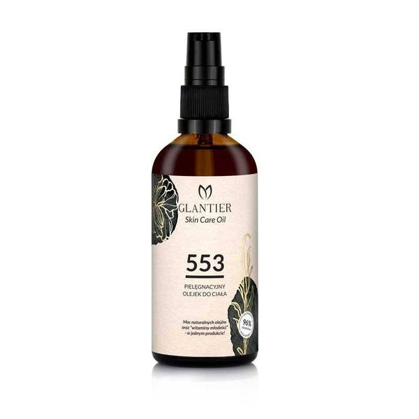 De Skin Care Oil gevuld met een schat aan Vitamine E, jojoba-, amandel- en argan oliën, hydrateert, voedt en regenereert de olie de huid diep, waardoor de zachtheid en elasticiteit wordt hersteld. Het biedt bescherming tegen schadelijke externe factoren en laat de huid glad en stralend achter. Het is een waar feest voor de zintuigen, dankzij de formule verrijkt met geurtonen van de Glantier parfum 553 - Oriëntaals en Floraal.