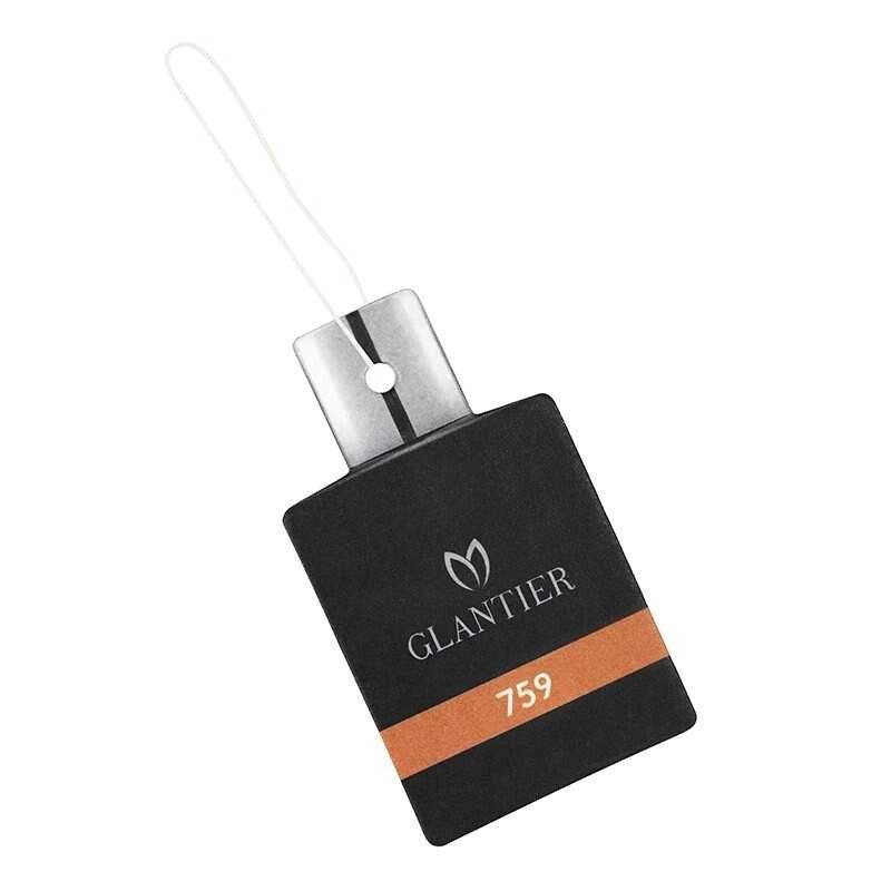Geurende Autohanger 759 is een langzaam vrijkomend aroma van de heren parfum Glantier 759 - Houtachtig en Kruidig. Het is niet alleen dat je voertuig zich zal vullen met de sensuele en elegante noten van verse grapefruit, sappige rode mandarijn en verfrissende munt maar je zal je ook omringt voelen door luxe. Je reizen zullen zich door het Proust-effect koppelen aan jouw favoriete herinneringen.
